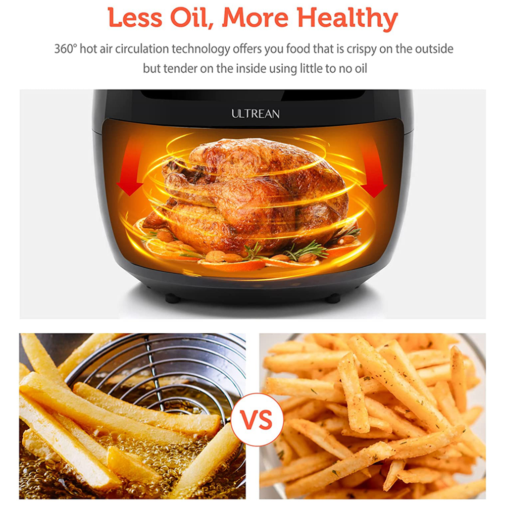 99% PERCENT LESS FAT --- rapid air circulation creates crispier textures faster across a wide range of ingredients, including vegetables, chicken, chips and cakes
