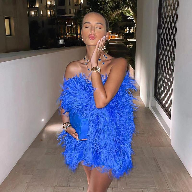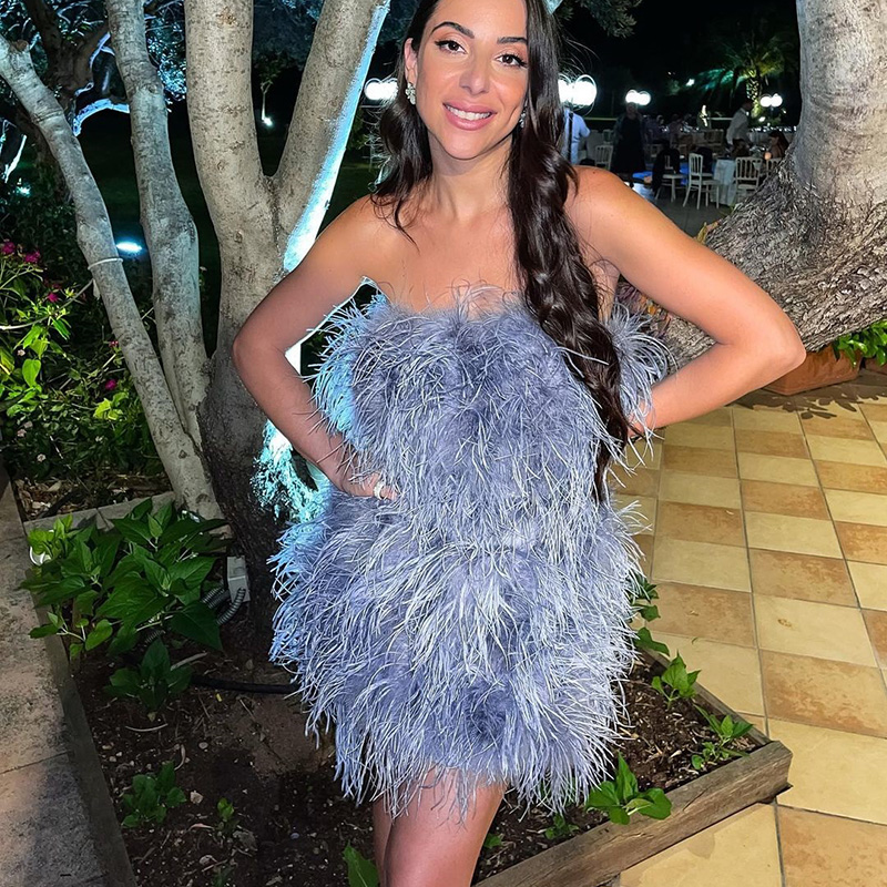 Elegant Ostrich Feather Mini Cocktail Dresses Sexy Strapless Short Prom Dress Wedding Birthday Party Gowns S4082