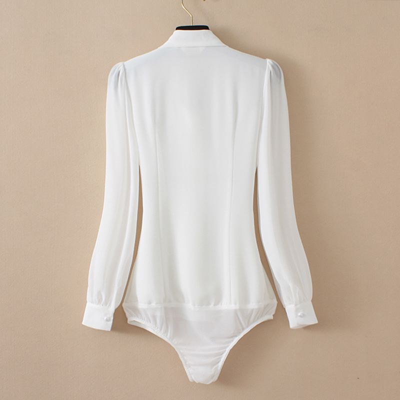 Elegant Chiffon Bodysuits Women Lantern Long Sleeve Bow Tie Neck Office Work Lady Tops and Blouses Female Formal Body Shirt