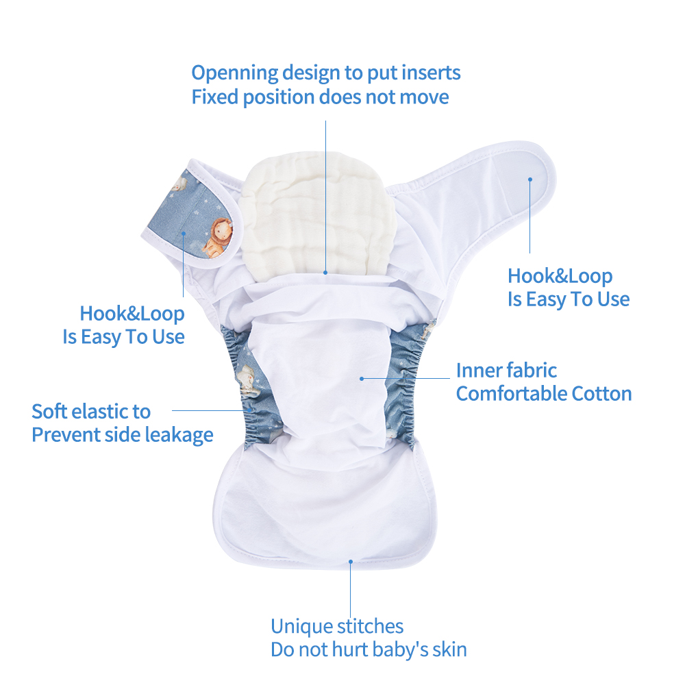 Elinfant 4PCS magic tape waterproof cotton cloth diaper fashion print for 5-30 pounds washable reusable baby cloth diaper