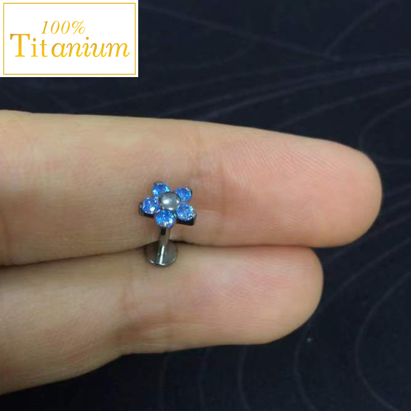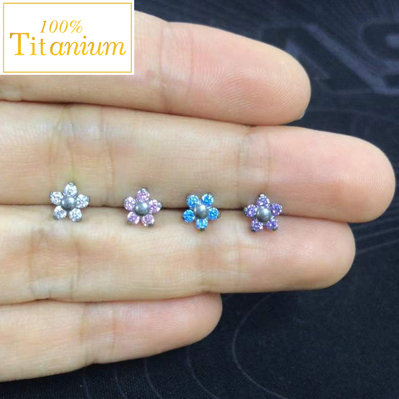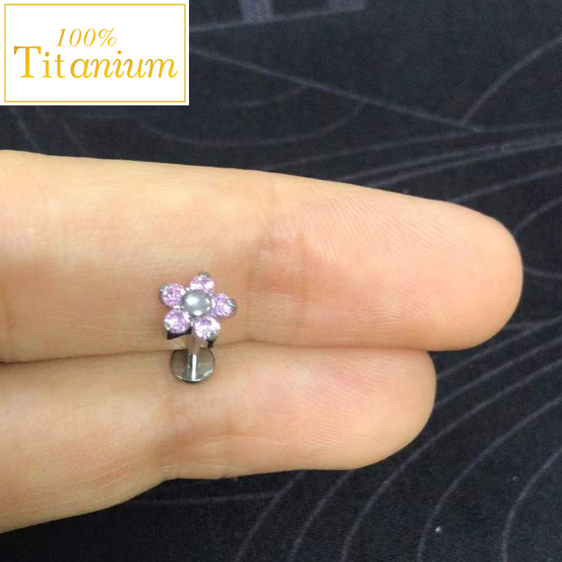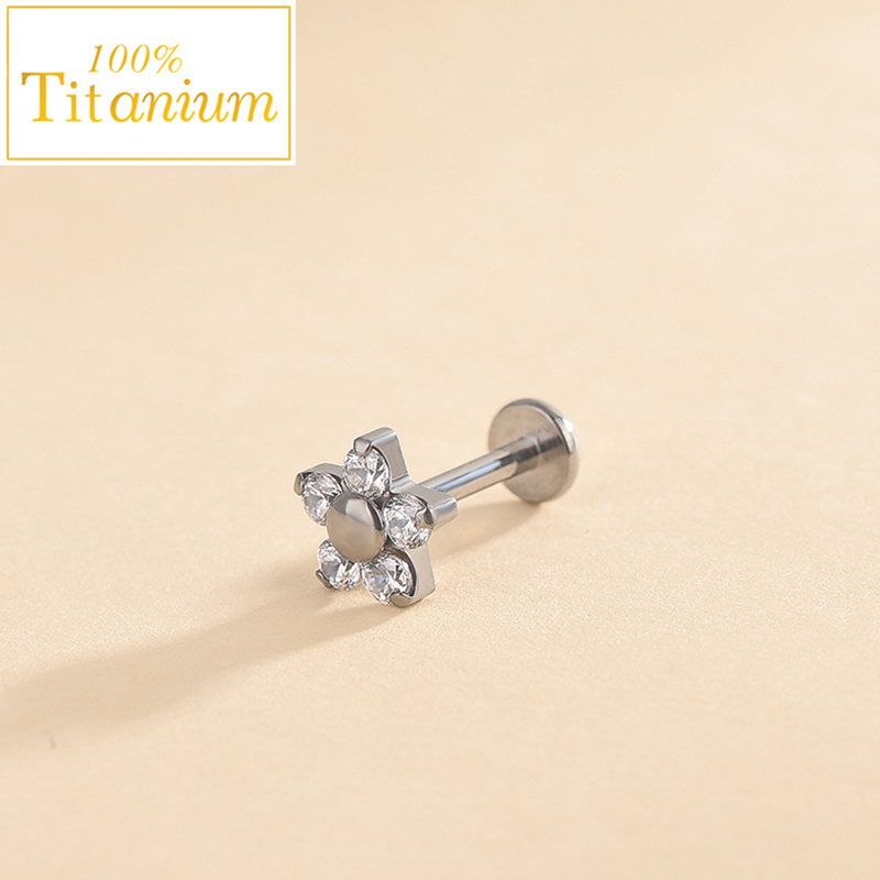 1PC F136 Titanium Labret Piercing Lip Studs Cartilage Tragus Helix Piercing Ear Nails Zircon Flower Earrings Body Perforated Jewelry