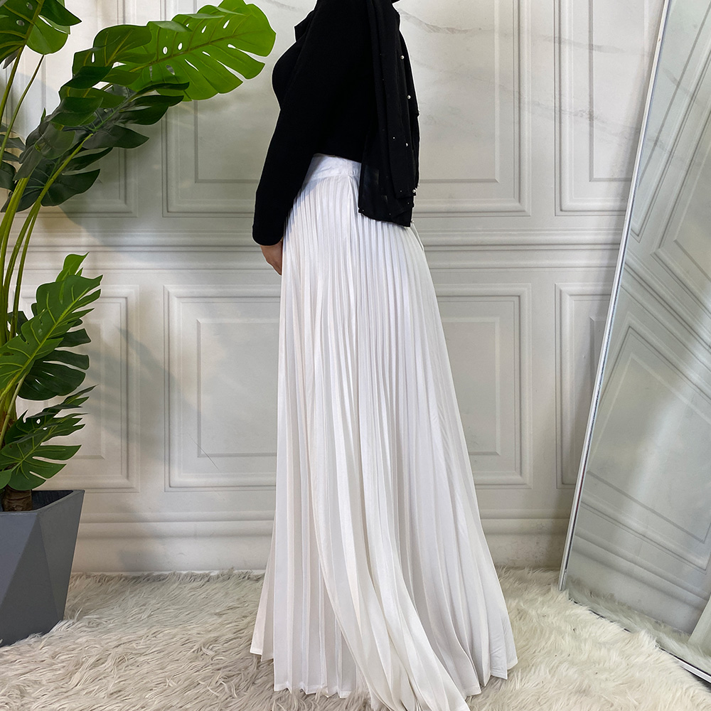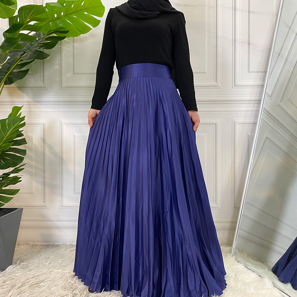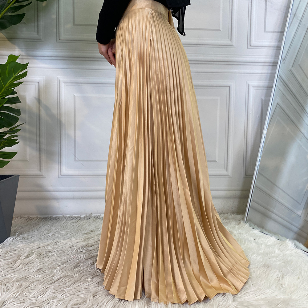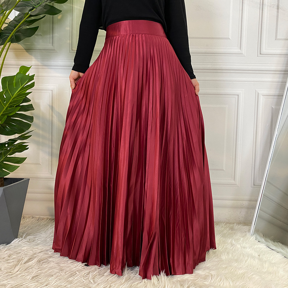 Faldas Women Elegant Satin Pleated Autumn Winter Party Office Solid Color High Waist Muslim Long Chic Maxi Skirt