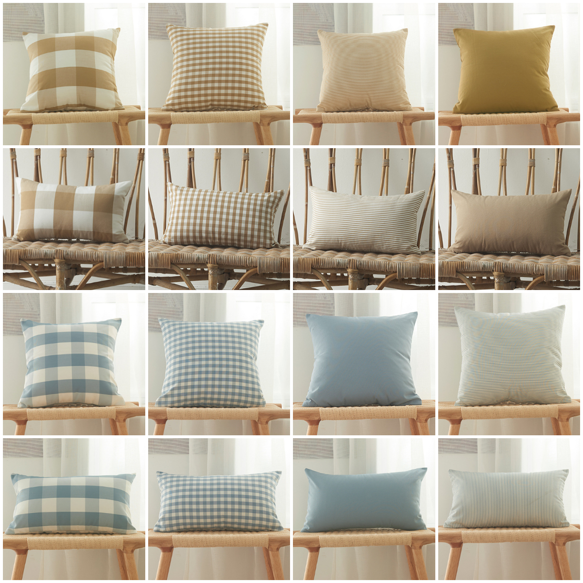 Farmhouse Buffalo Plaid Striped Throw Pillow Covers Sofa Chair Decorative