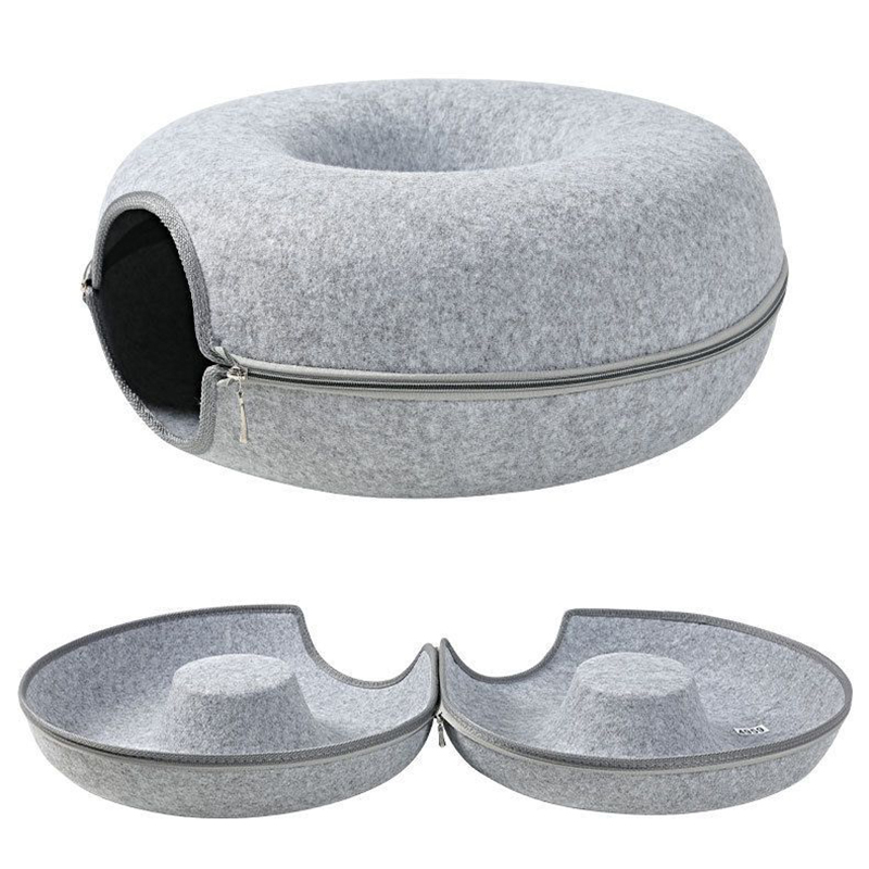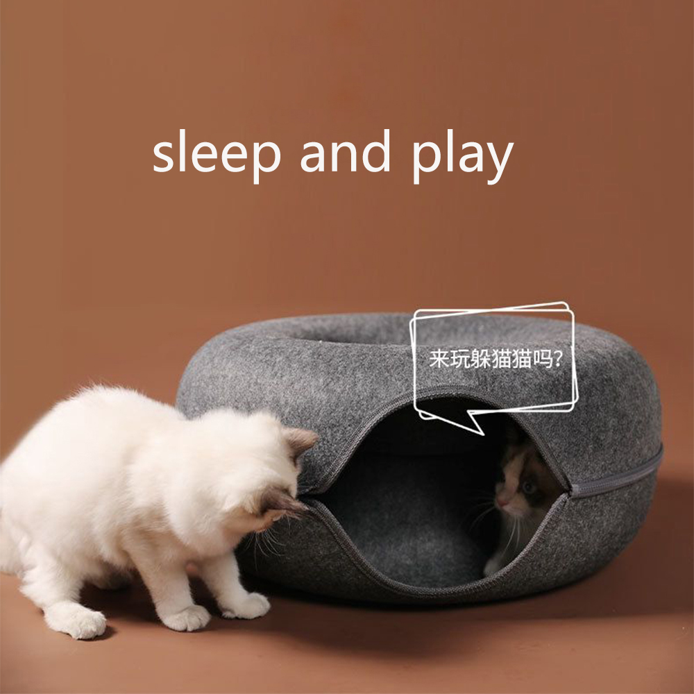 Felt Cat Tunnel Bed Doughnut Pet Cat Hideaway Nest Bed Puppy Cat Bed Cave Hideout for Cat Play Toys Pet Supplies Accessories