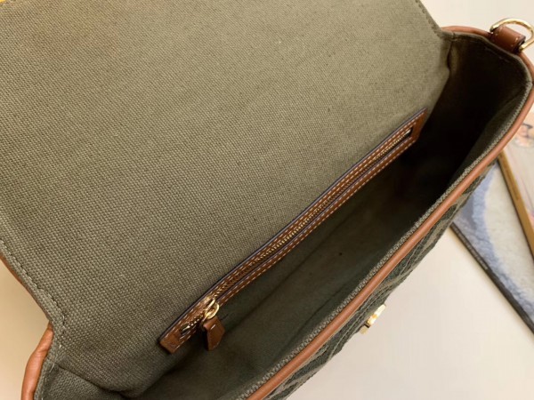 Iconic Baguette bag in medium size, with flap and FF fastening with magnetic clasp. Lining with zip pocket. Can be carried by hand or worn cross-body thanks to the detachable shoulder strap. Made of blue denim with embroidered FF motif. Finished with natural-colour leather details. Pequin webbing shoulder strap.