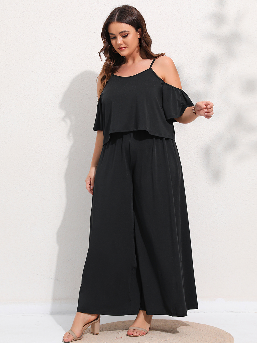 Finjani Cold Shoulder Top & Wide Leg Pants Plus Size Suit Set For Women