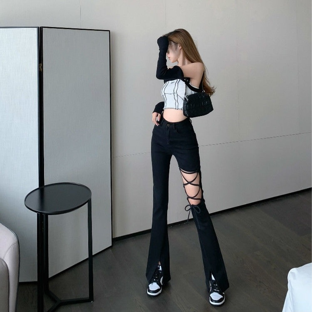 Flared Pants for Women Leggings Skinny Ripped Sexy Vintage Denim Women's Summer Trousers Bell Bottom Jeans Woman Black Trend