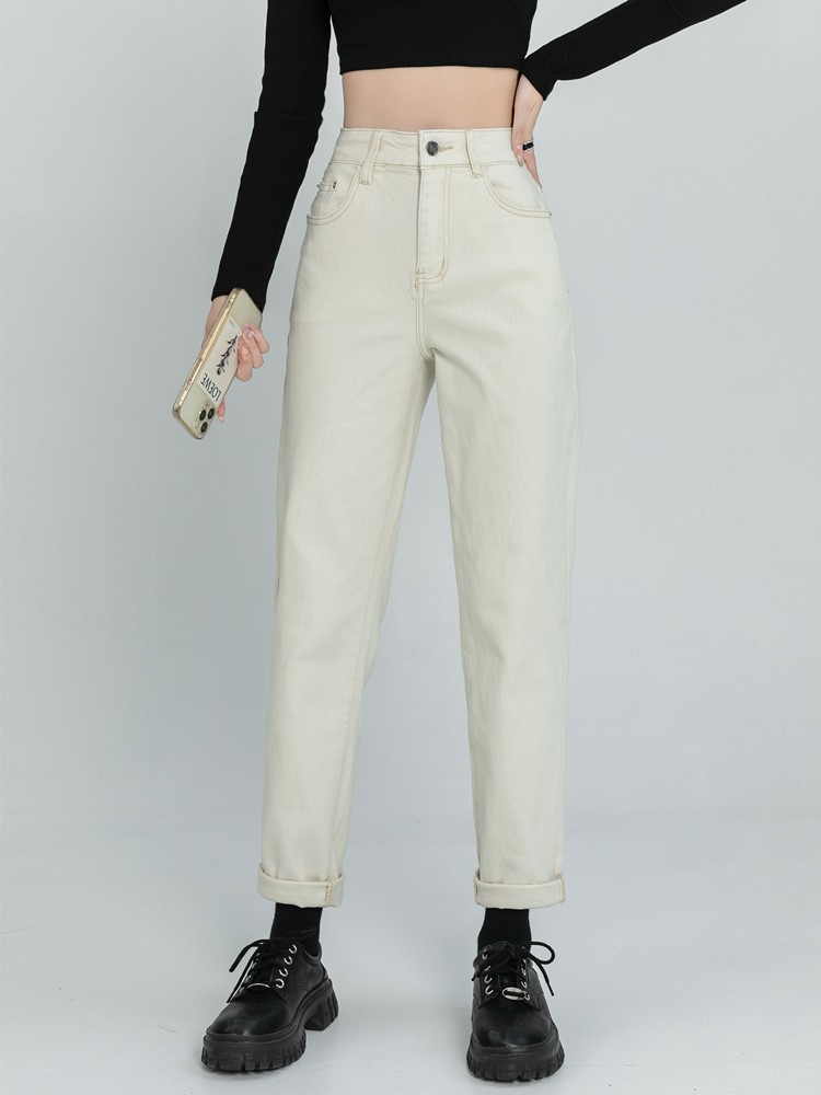 GUUZYUVIZ High Waist Elastic Denim Harem Pants Ladies Casual Vintage Wash Jeans Women Autumn Winter Brown Mom Jean Femme