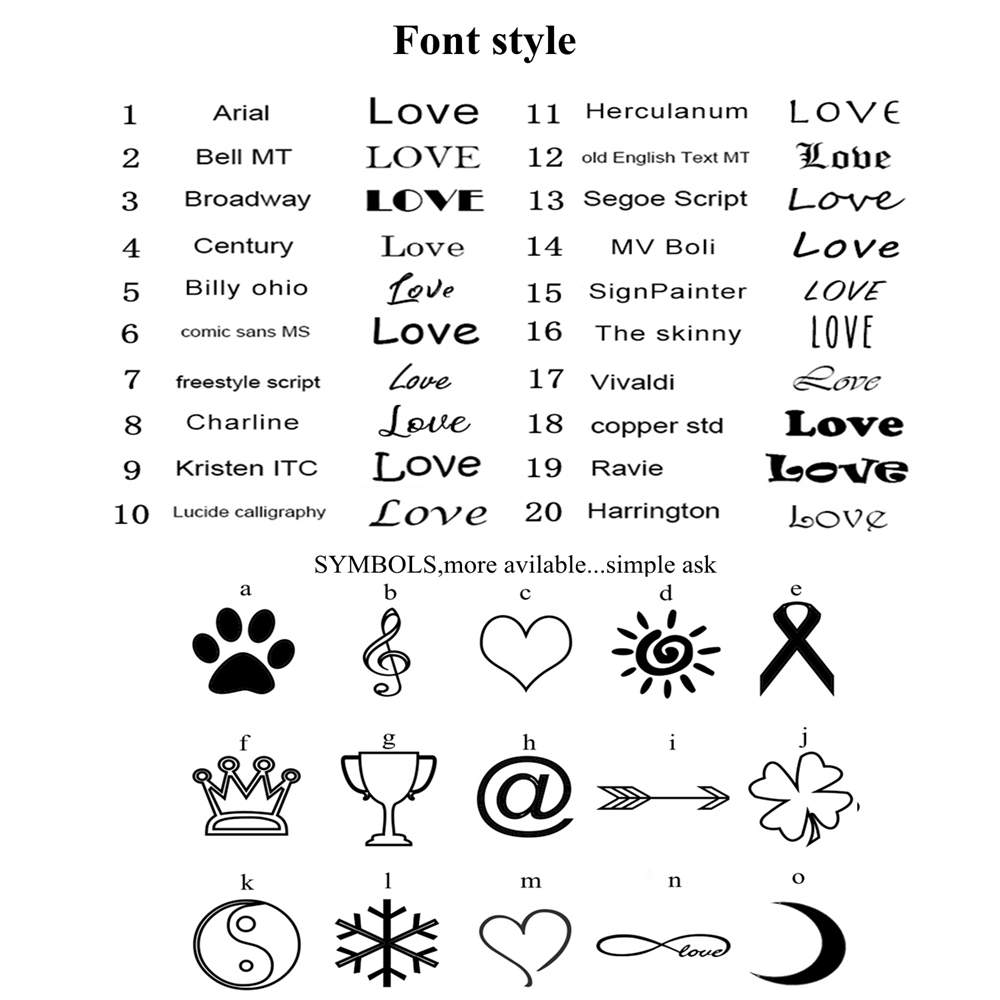 We can engrave initials or short saying on the clasp. Please choose the font and engraving details when you place the order ,send the text such as :