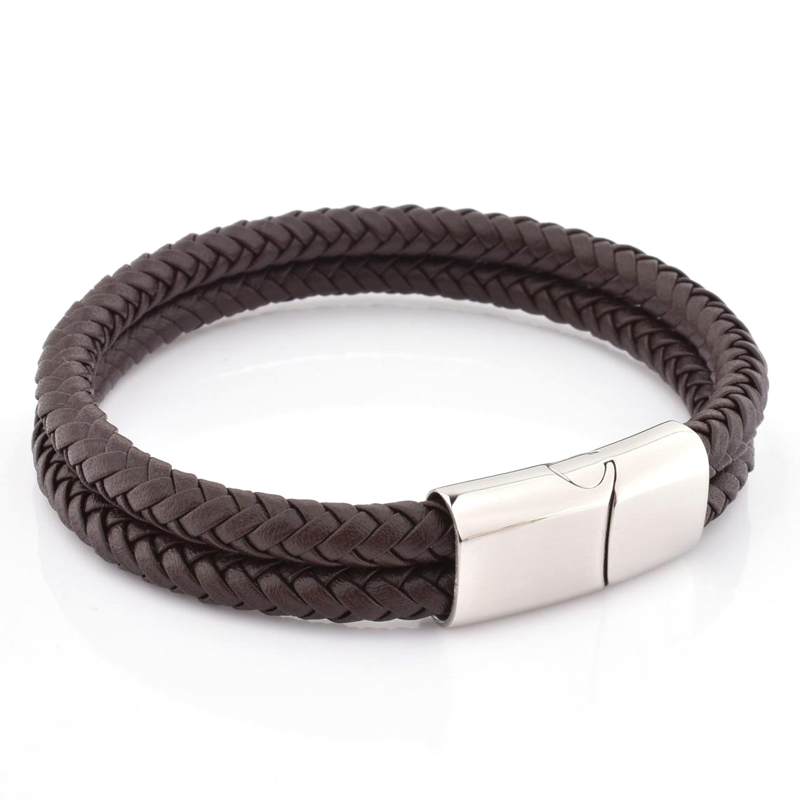 This bracelet is a deluxe, great quality product and is comfy to wear. Perfect for a modern, trendy man, it is stylish and trendy for every occasion, and can be worn every day. This design is hand braided using genuine leather great quality and is finished with a stainless steel secure magnetic sliding clasp. The bracelet feels and looks very nice on.