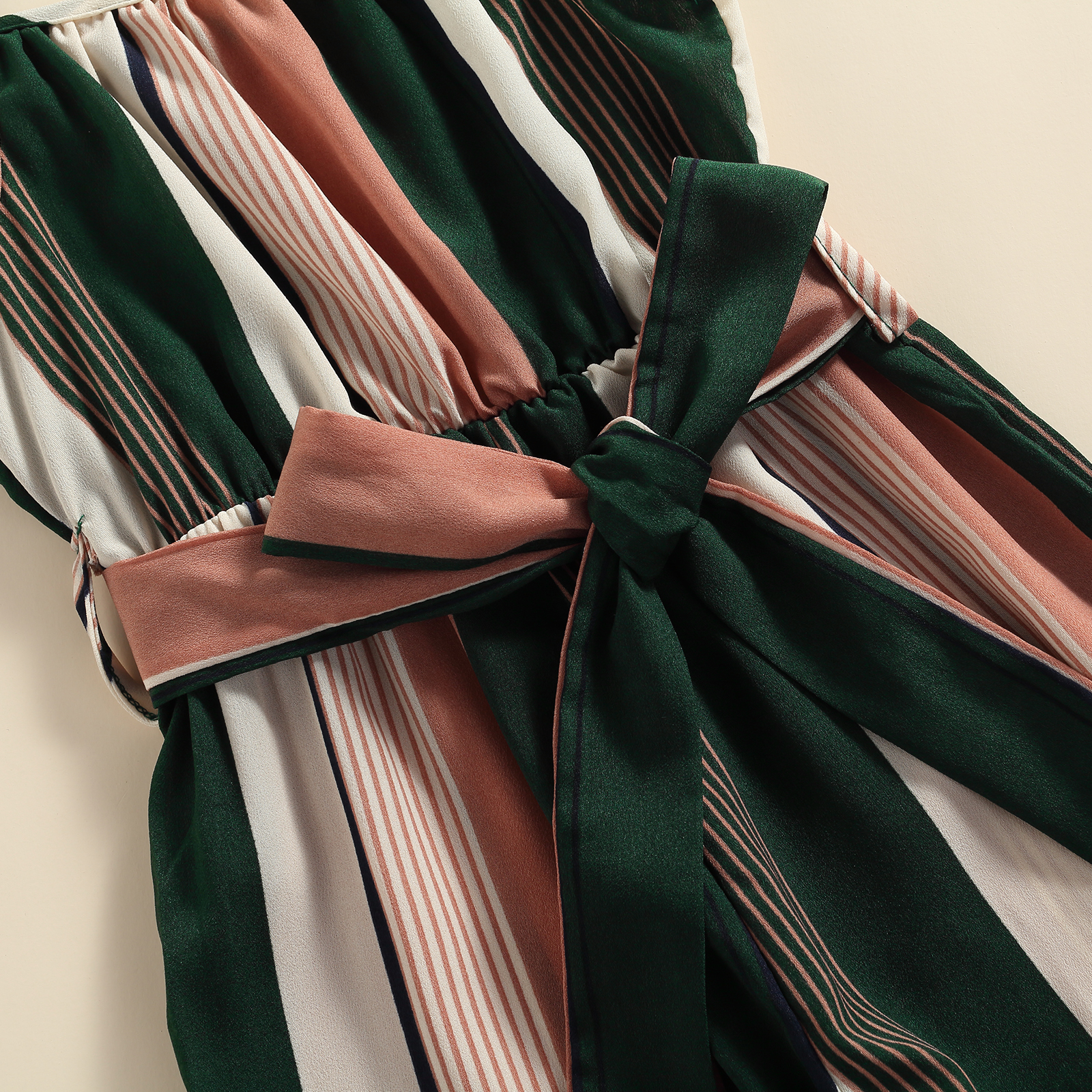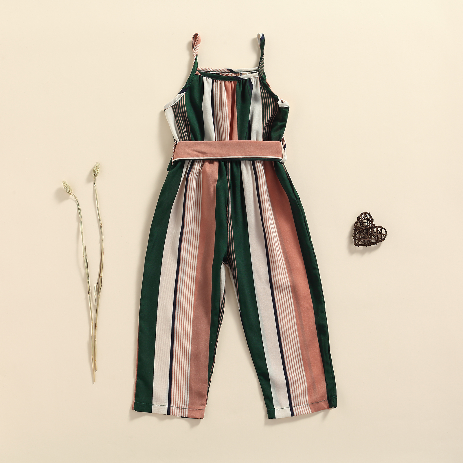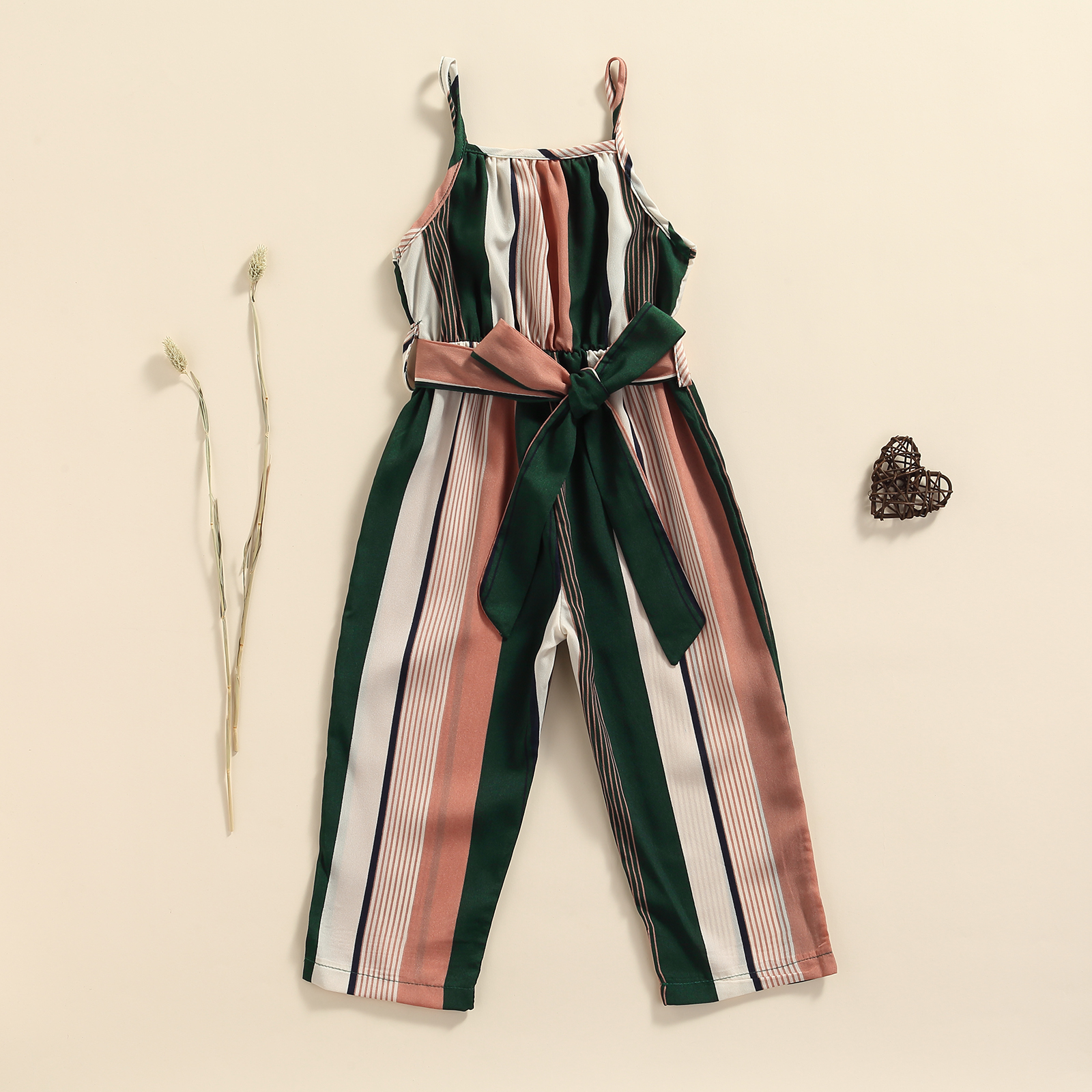 Girls Casual Bandage Sleeveless Suspender Jumpsuit Summer Stripe Printing Overalls Long Pants Children's Clothing