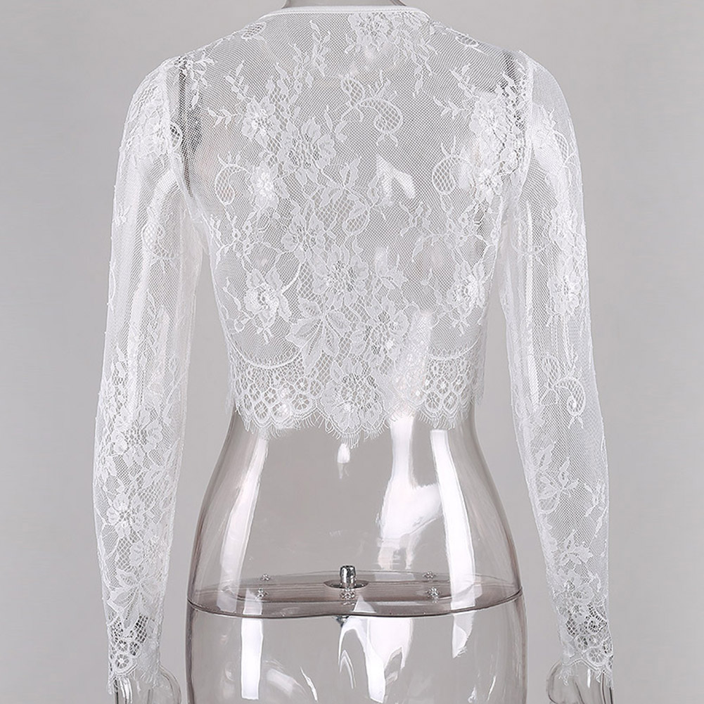 Goth Sexy Lace Tops Gothic Women Black Hollow Out Short Tops Summer Long Sleeve Party Nighclub Transparent Tops