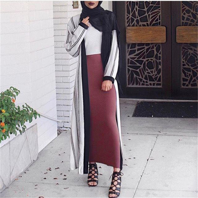 Great basic base pleated muslim skirt female vintage stretch knit pleated skirt full length muslim skirt F1733