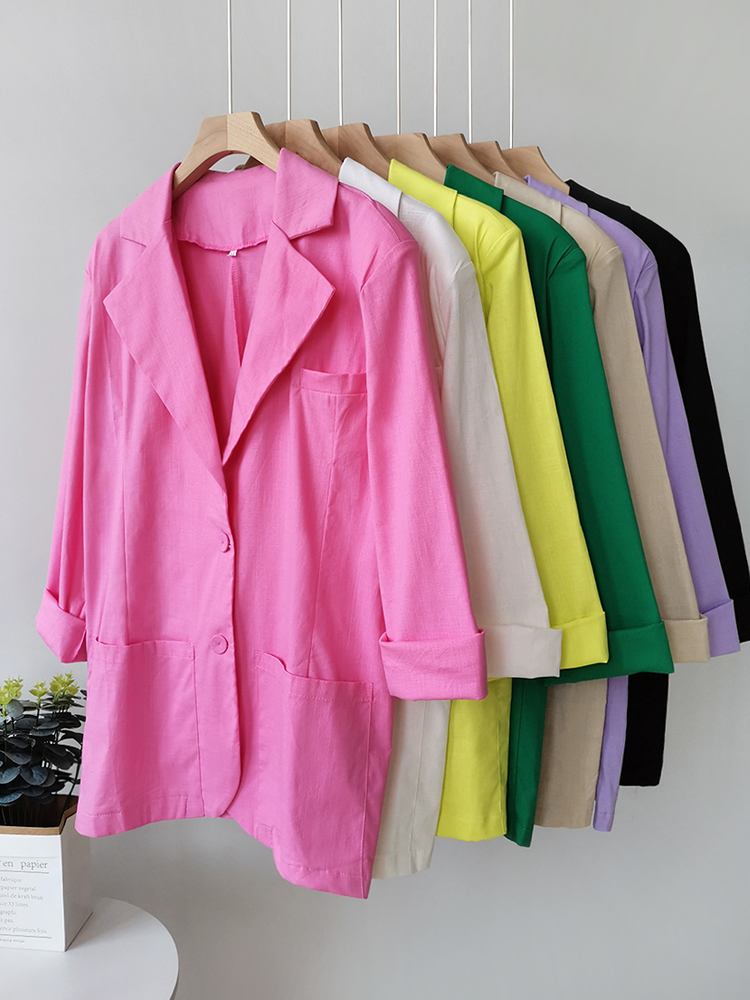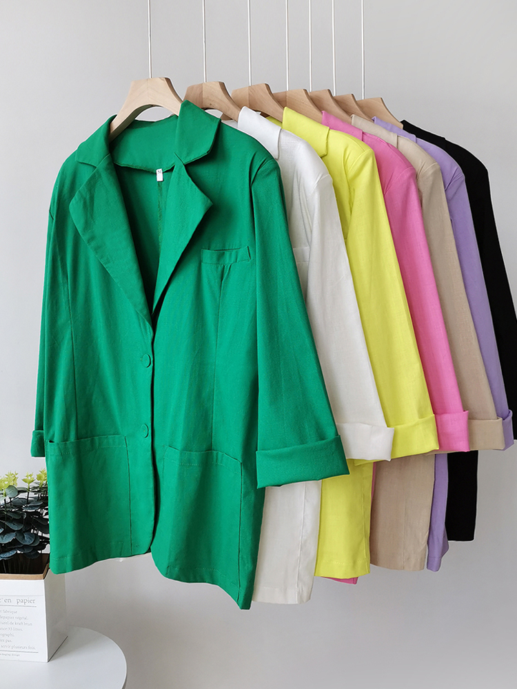 Green Cotton Linen Women's Oversize Jacket Candy Colors Long Jackets Suits Blazer for Women Elegant Stylish Office Tops Coat