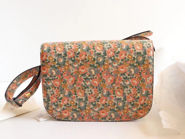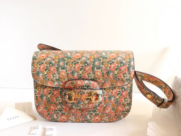 The Gucci Horsebit 1955 shoulder bag is introduced within an exclusive collaboration for Fall Winter 2020, presenting Liberty London’s emblematic floral prints within a special collection of accessories and ready-to-wear. With its collection of fine ornaments, fabrics and objets d’art from around the world, the Tudor revival luxury department store founded in 1875 invoked social change in interior design and dress to the point that the Art Nouveau period in Italy is called ‘Liberty Style’. A special mechanism adjusts the length of the shoulder strap so it can be carried on one shoulder or cross body.