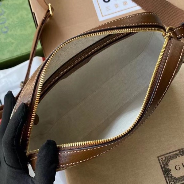 The Interlocking G has remained one of the most symbolic codes of the House since its introduction. The distinguishing emblem appears as a leather detail atop this messenger bag. Completing the design’s logo feel, the style is crafted from monogram canvas.