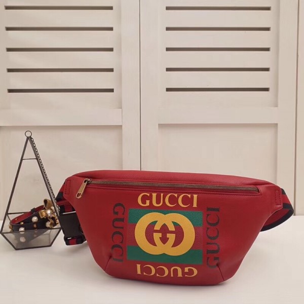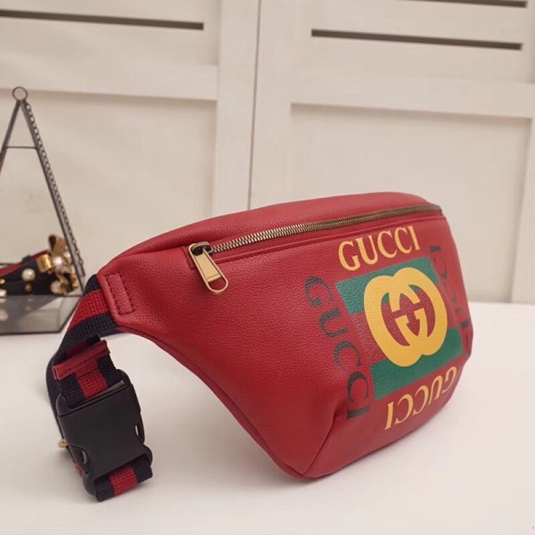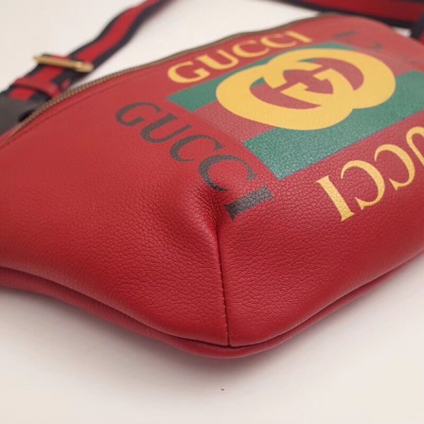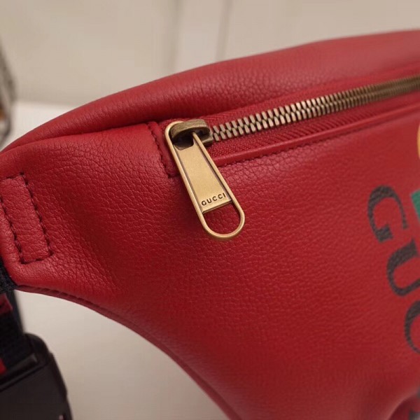Inspired by vintage prints from the eighties, the Gucci logo is brought to the forefront. The retro-style motif is presented on the front of a belt bag in supple grained leather.