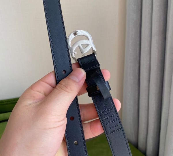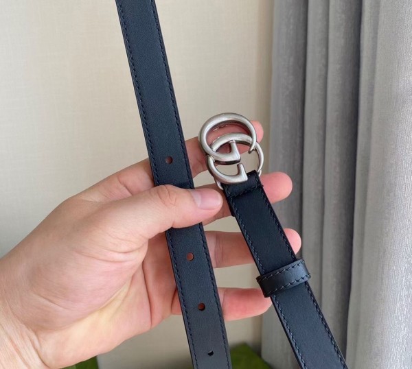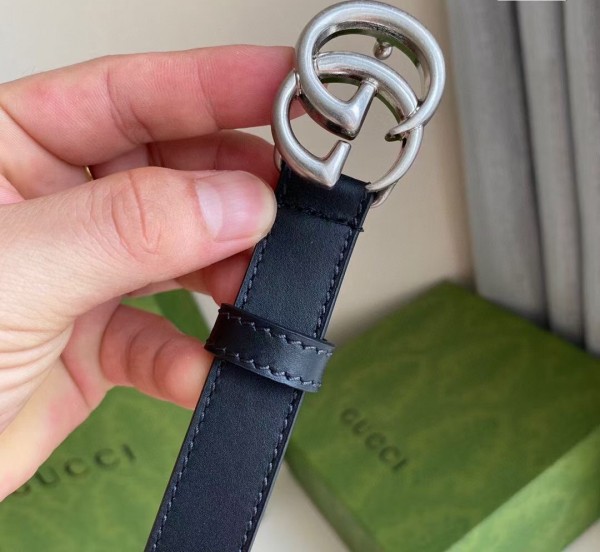 Gucci Black GG Marmont 20MM Belt with Silver Buckle