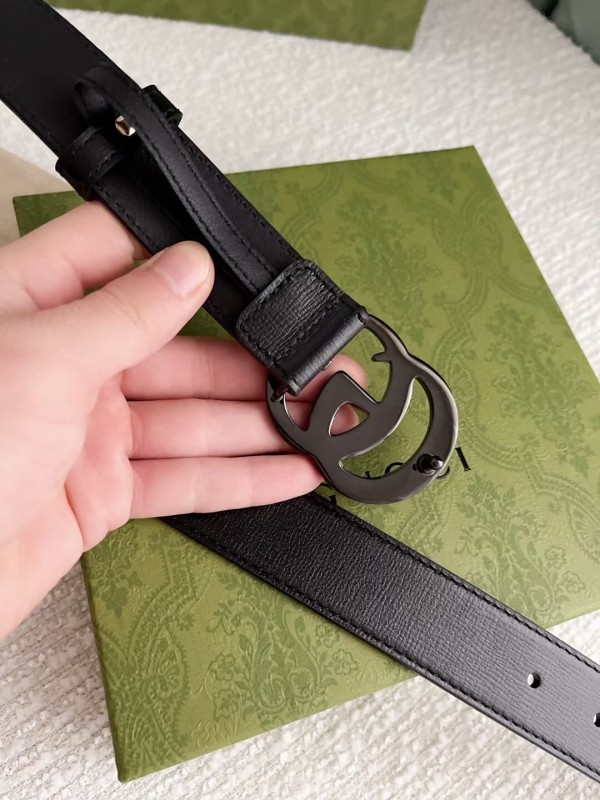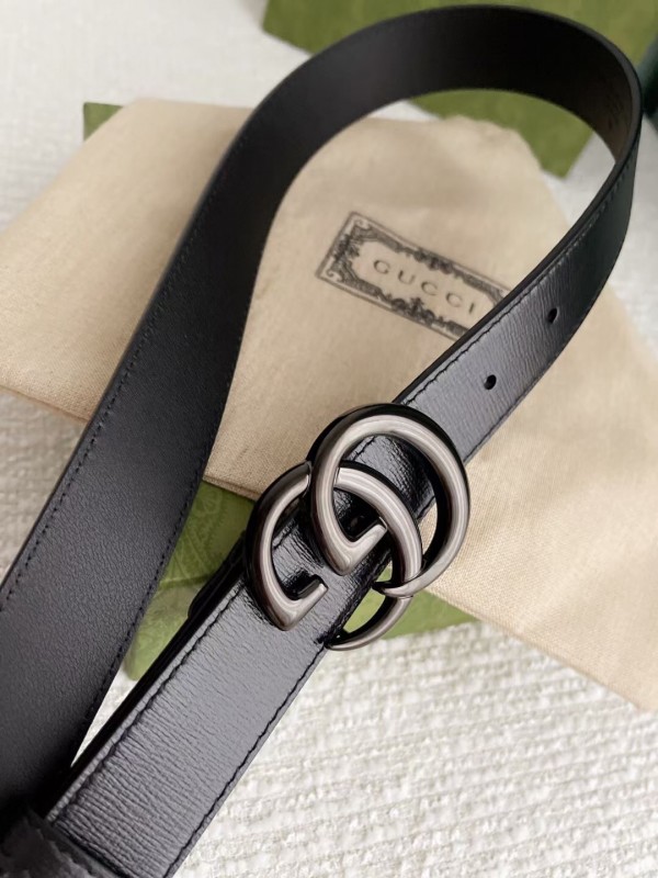 Gucci Black GG Marmont 30MM Belt with Black Buckle
