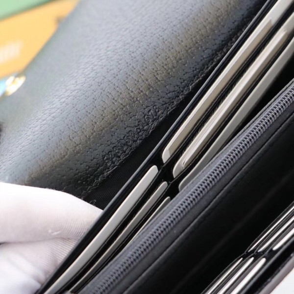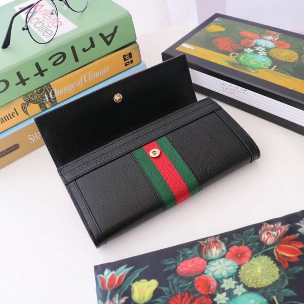 The continental wallet combines the signature Double G detail with the Web stripe—a timeless pairing that speaks to Gucci’s roots. Crafted from textured leather, the accessory pays tribute to the retro inspired references felt throughout the world of Ophidia.