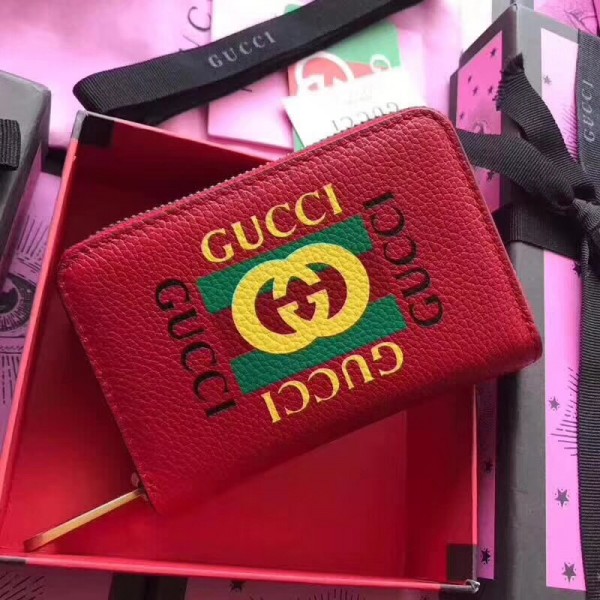 Inspired by vintage prints from the eighties, the Gucci logo is brought to the forefront. The retro-style motif is presented on the front of a zip around card case in supple, textured leather.