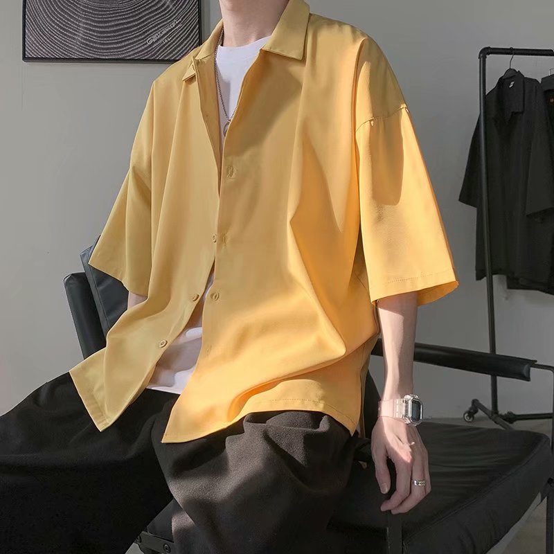 Half Sleeve Shirts Men Solid Color Loose Oversize S-3XL Harajuku All-match Simple Summer Draped High Style Casual