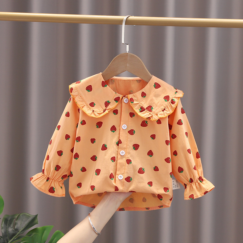 IENENS Girls Blouses Clothes Baby Spring Shirts Toddler Infant Cherry Print Tees Tops 1 2 3 4 Years Kids Cotton Shirt