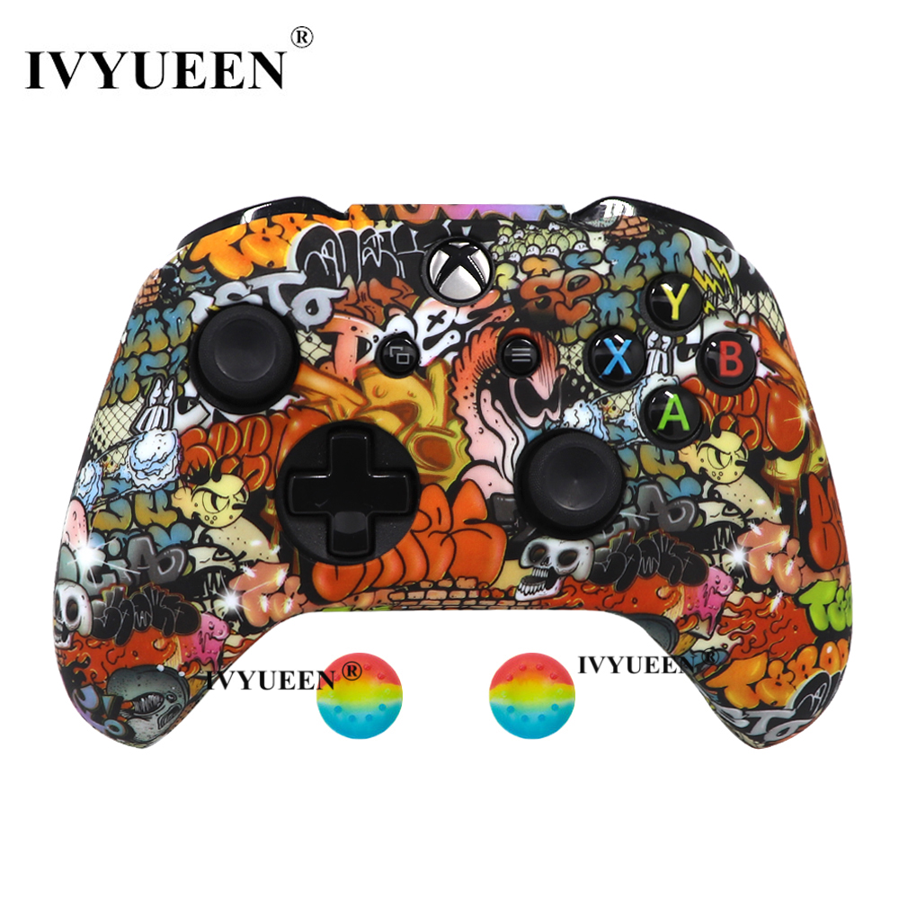 IVYUEEN Silicone Protective Skin Case for XBox One X S Controller Protector Water Transfer Printing Camouflage Cover Grips Caps