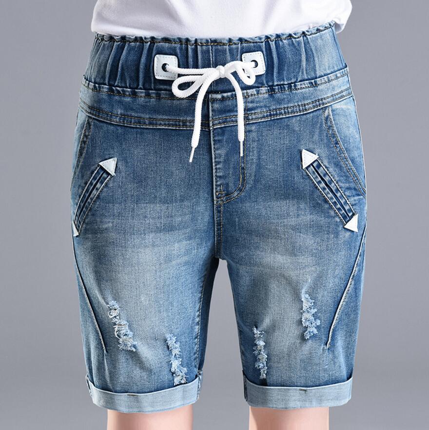 Jeans For Women Summer Kenn Length Pants Elastic High Waist Loose Jeans Hole Crimping Denim Shorts