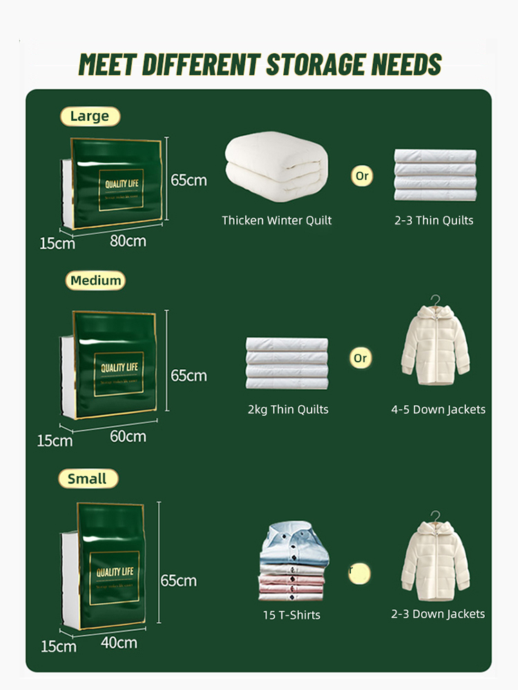●This vacuum bag is sale by set, it is thicken upgraded, it will help you save up to 80% storage space.