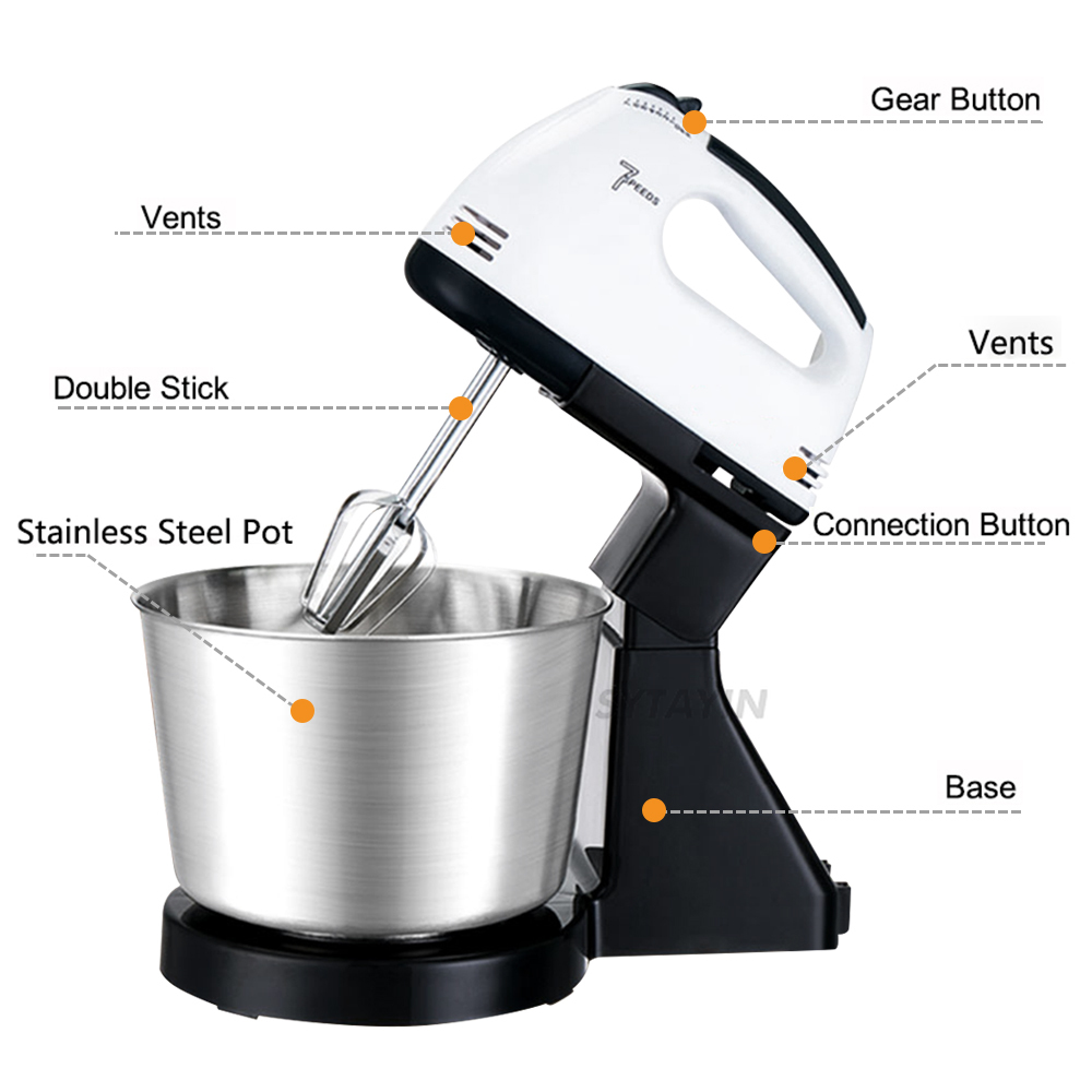 Feature : Stand Stainless Steel,Dual-function hand mixer and stand mixer,Planetary Cooking Machine,100W,Electric Kitchen Mixer