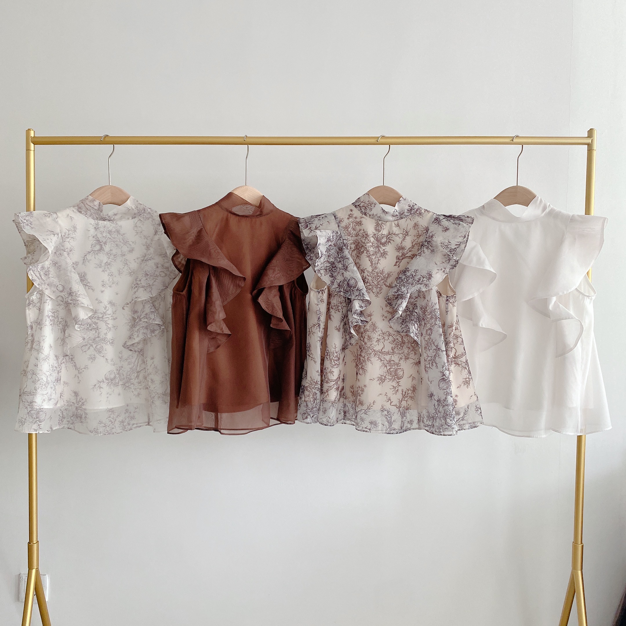 Kuzuwata Japanese Temperament Sweet Blouse Summer Shirt Stand Collar Lace Up Bowknot Print Flying Sleeve Mujer Blusa