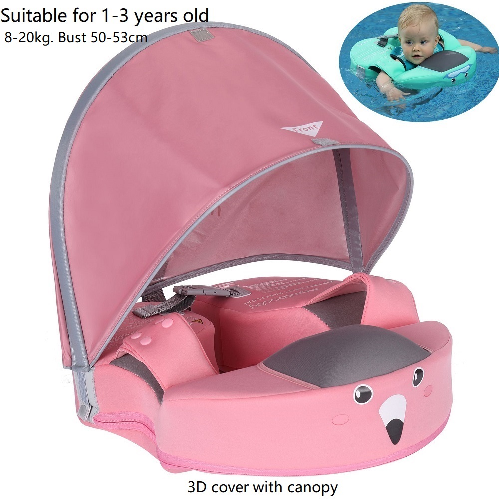3RD UPGRADED VERSION]Baby Swim Float comes with a removable canopy. The removable assemble UV-PROOF canopy sun canopy covered with UPF 50+ sunscreen coating protects baby's skin away from the sun. Make baby enjoy the swimming fun in summer.