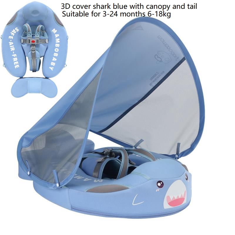 Shark float with canopy :Add removable tail, Prevent baby from flipping backwards.
