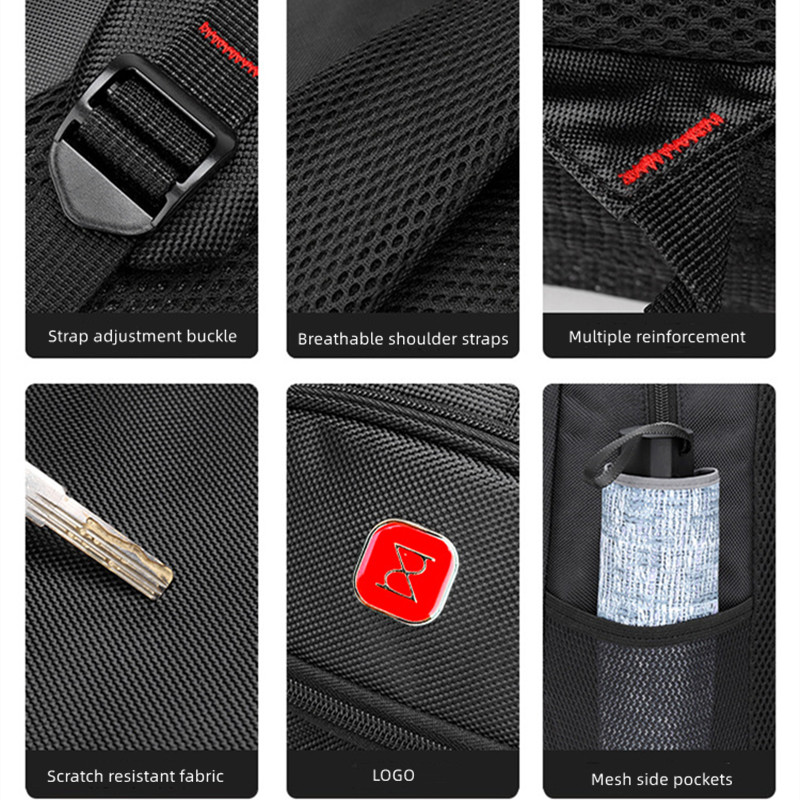 Product structure: Front pocket, side pocket, main pocket, computer interlayer