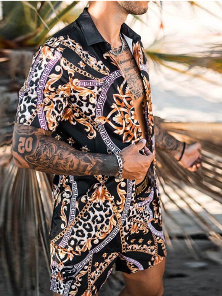 Leopard grain Hawaiian Set Mens Printing Set Short Sleeve Summer Casual Floral Shirt Beach Two Piece Sets S-3XL