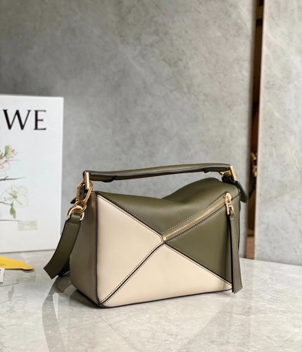 Loewe Puzzle Small Bag In Green/Oat Calfskin