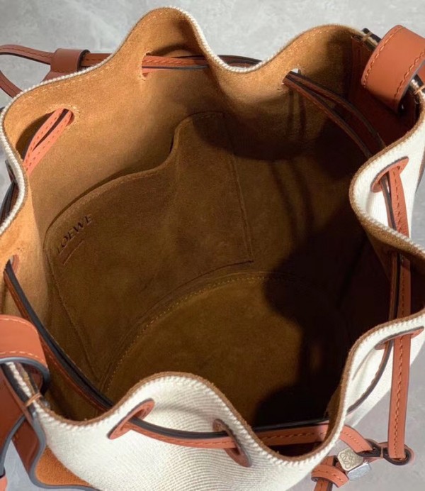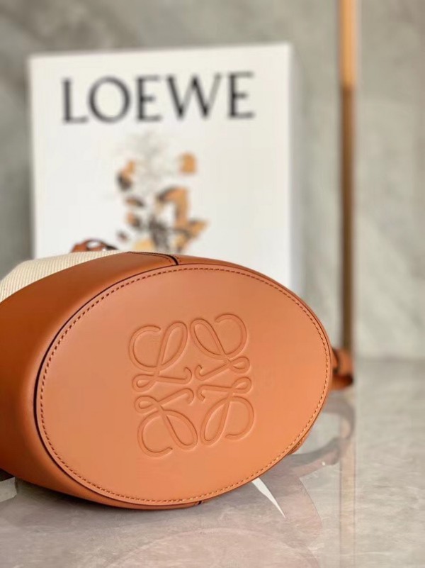 Loewe’s Balloon bucket bag is a brand new style for Spring ’20. This small version has been made in the label’s historic Madrid workshop from cotton-canvas and tan leather. The base is debossed with the house’s recognizable swirling logo, too.