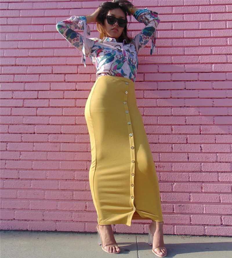 Long Skirt for Muslim Women Autumn Winter Muslim Single-breasted Bag Hip Skirt Knit Skirt Button Turkey Islamic Clothing