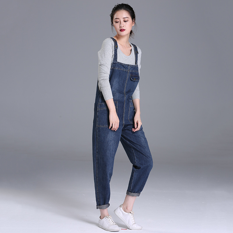 Loose Pocket Jeans Women Autumn Bib Pants Overalls Shoulder Strap Jumpsuit Large Size Denim Jeans Pants