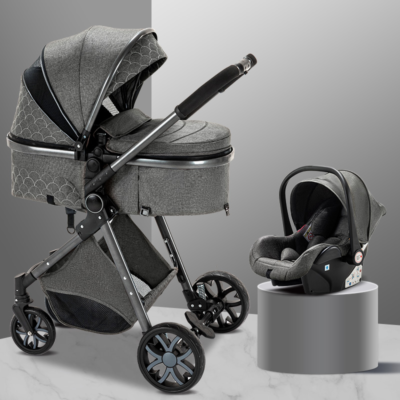 Luxurious Baby Stroller 3 in 1 Portable Travel Baby Carriage Folding Prams High Landscape Aluminum Frame Car for Newborn Baby