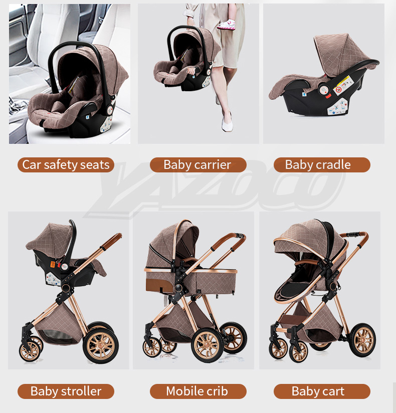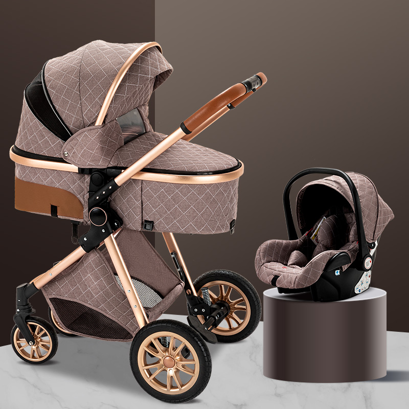 Luxurious Baby Stroller 3 in 1 Portable Travel Baby Carriage Folding Prams High Landscape Aluminum Frame Car for Newborn Baby