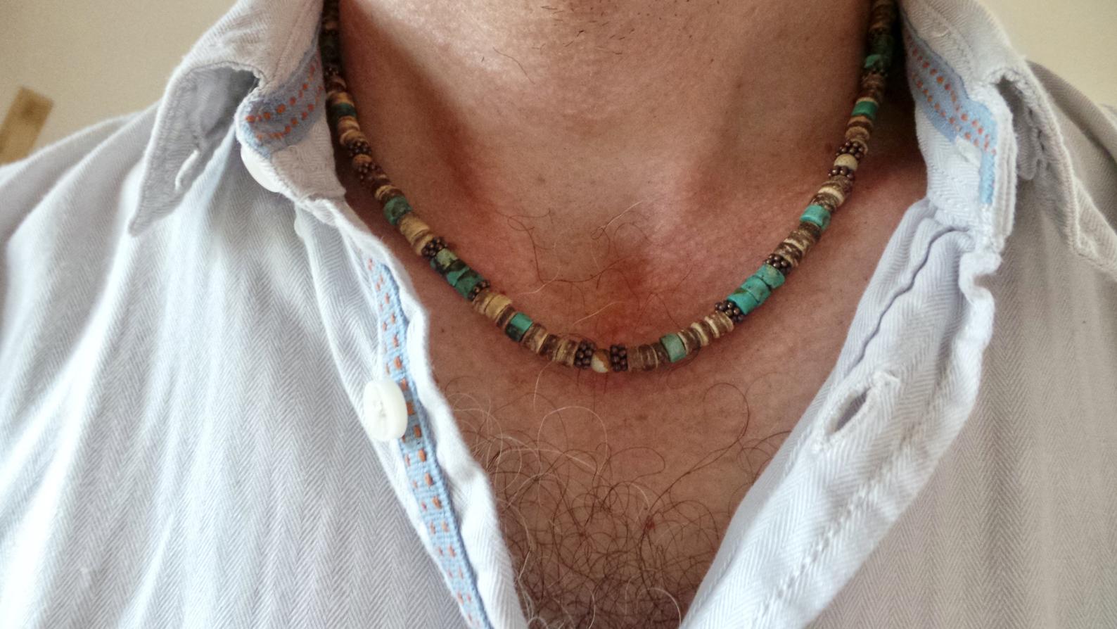 Mens beaded necklace. Mens surfer necklace.Surfer necklace. Brown beaded necklace. Mens coconut necklace