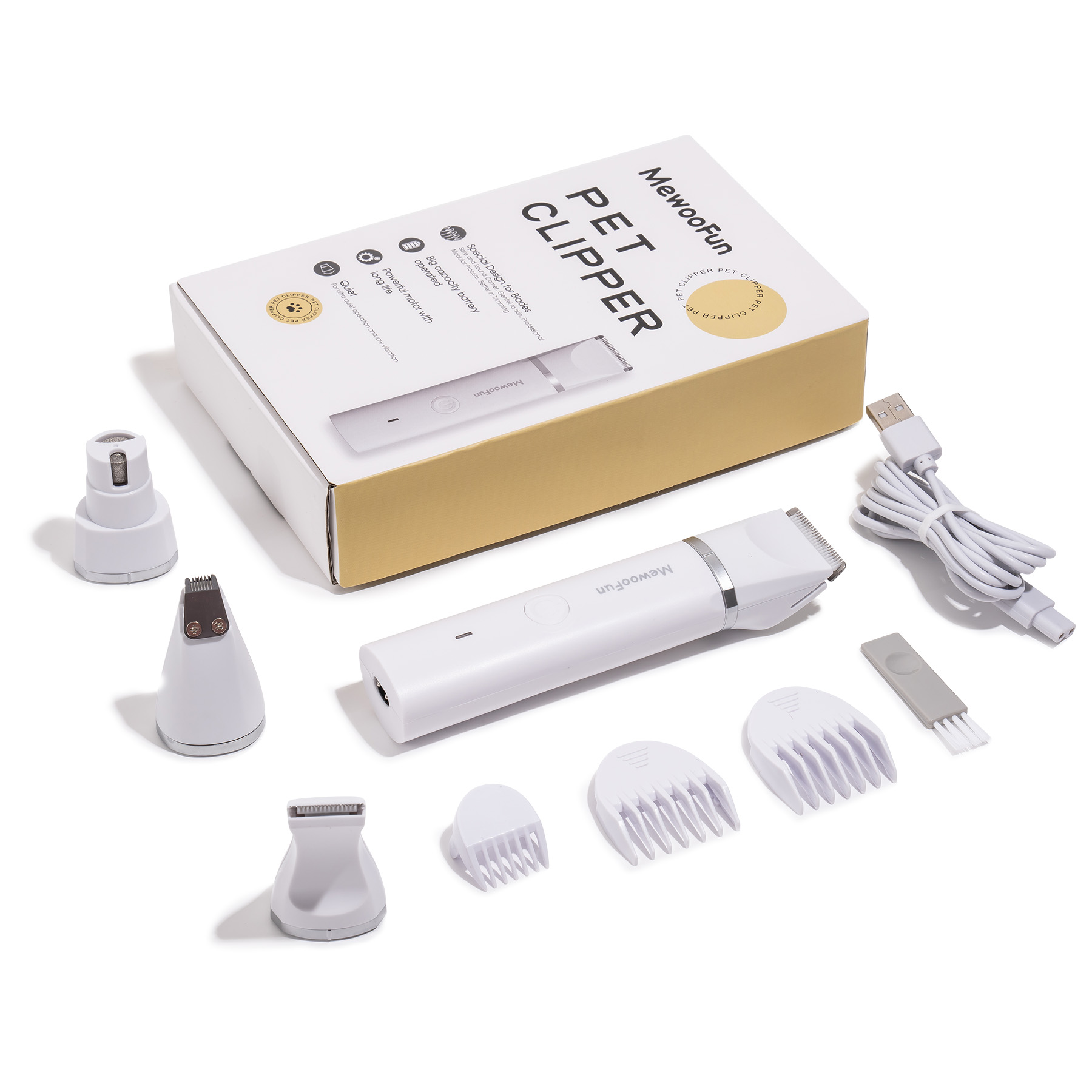 Mewoofun 4 in 1 Pet Electric Hair Clipper with 4 Blades Grooming Trimmer Nail Grinder Professional Recharge Haircut For Dogs Cat