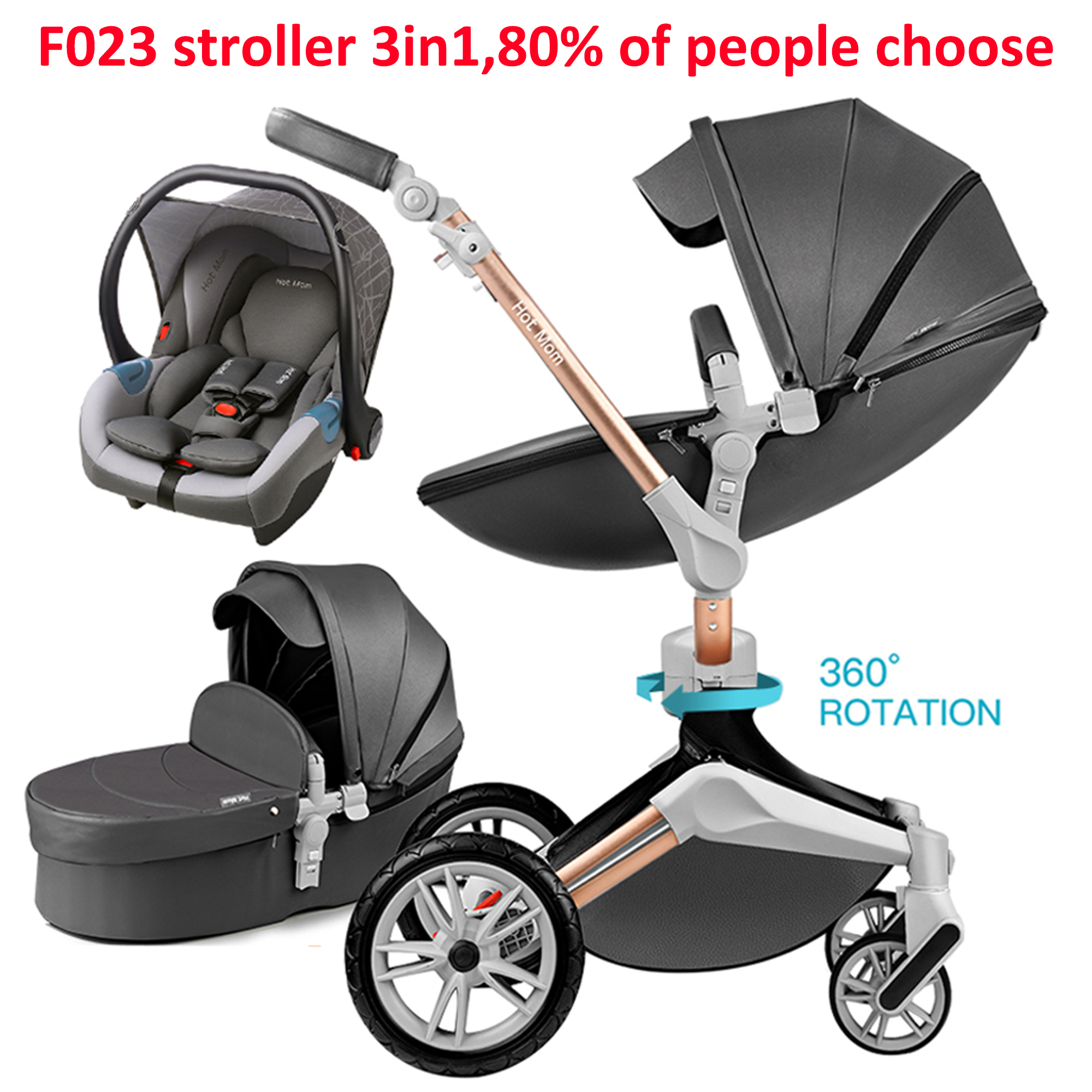 The 3 in 1 stroller,it include the stroller seat+bassinet and car seat