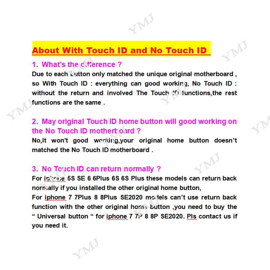 in addtion,for No Touch ID motherboard,when u installed it,you Can't use fingerprint identification and home button function,the home button without reaction when u pressed it,u only could use Assistive button to operate,pls note thit,thanks !!!