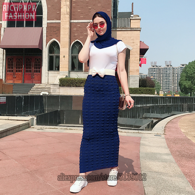 Muslim High Waist Skirt Long Islamic Skirts Womens Jupe Musulmane Femme Abaya Islam Maxi Dubai Musulman Turkey Arabic Skirts