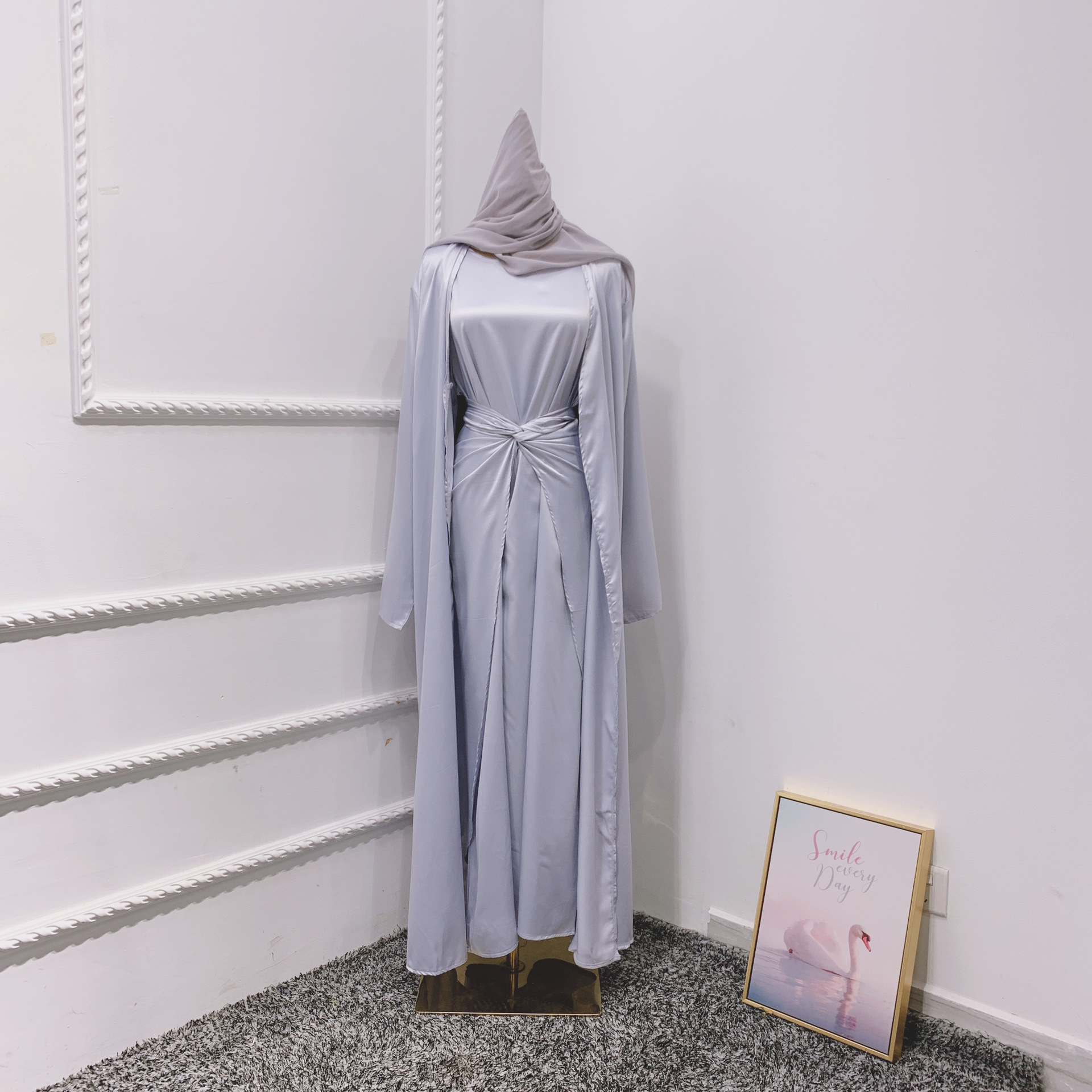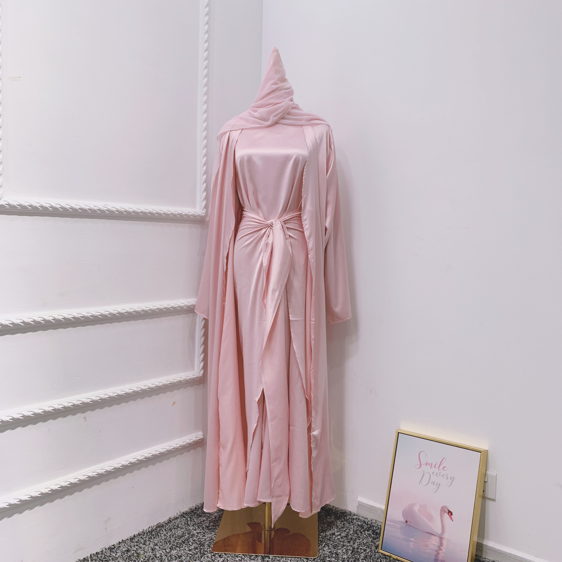 Muslim cardigan Kimono Women Hijab Dress Abaya Inner Robe with Wrap Tie Skirt Islam Clothing Dubai Turkey Kaftan Modest Outfit