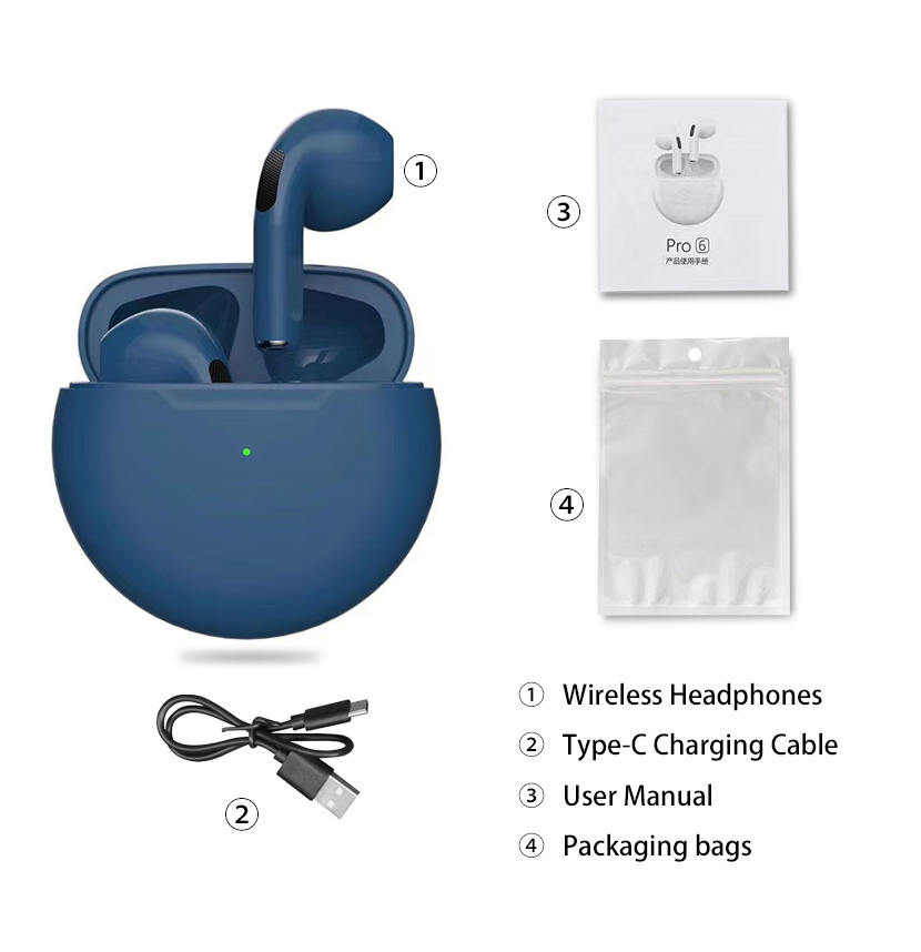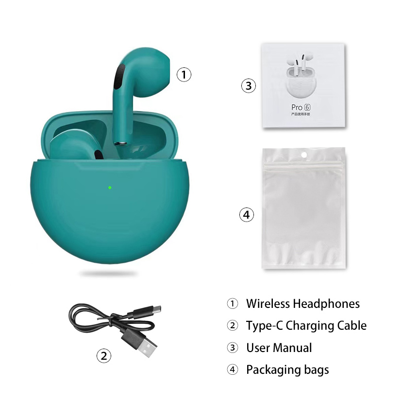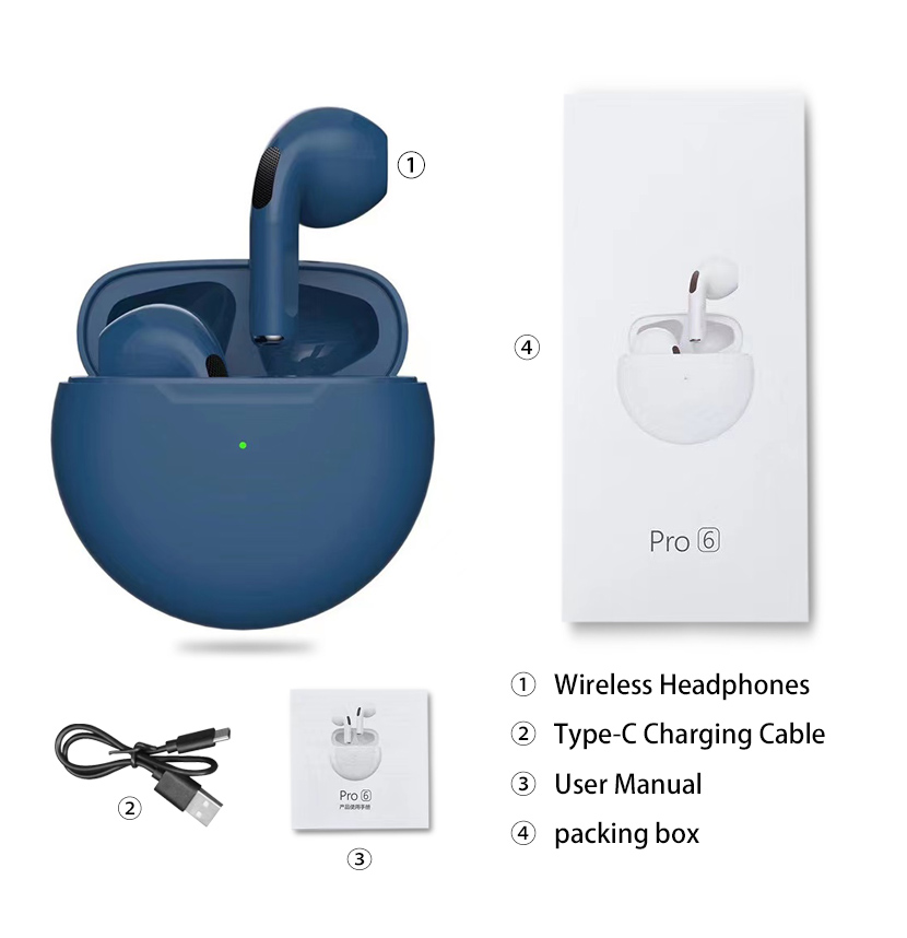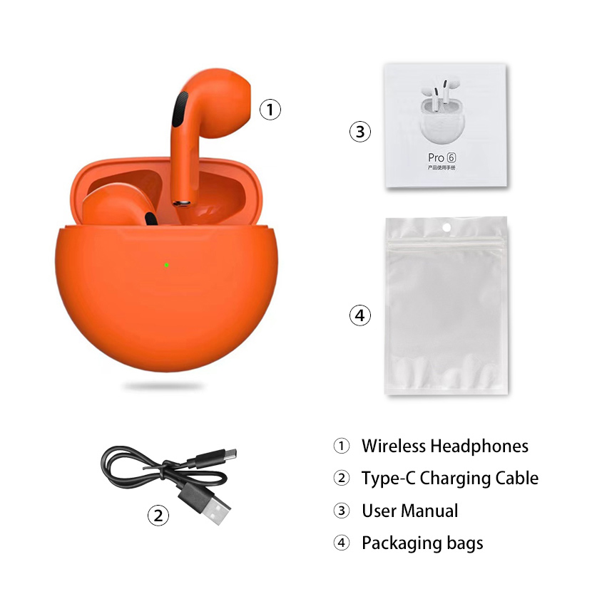 Original Pro6 TWS Headsets For Iphone Xiaomi Phones Bluetooth 5.1 Touch Control Wireless Earphones Sport Earbuds Music Headphone