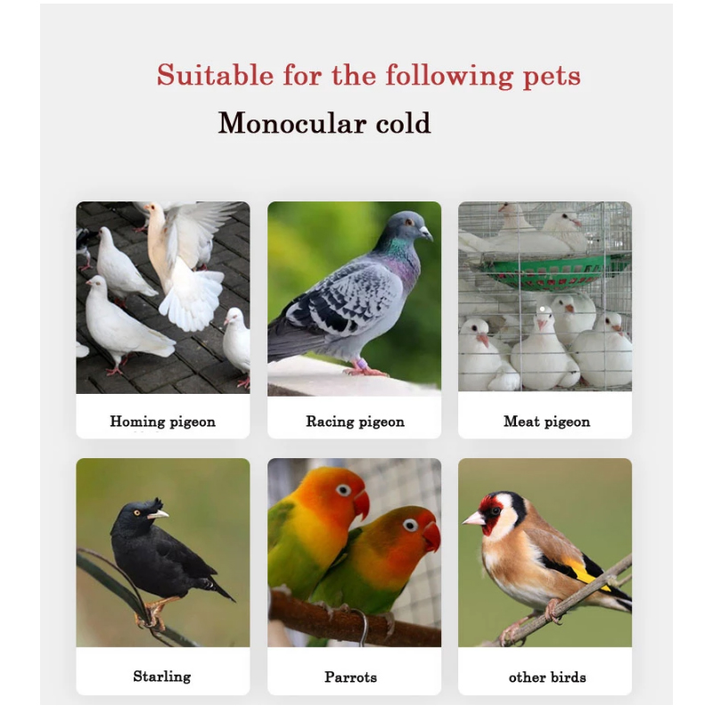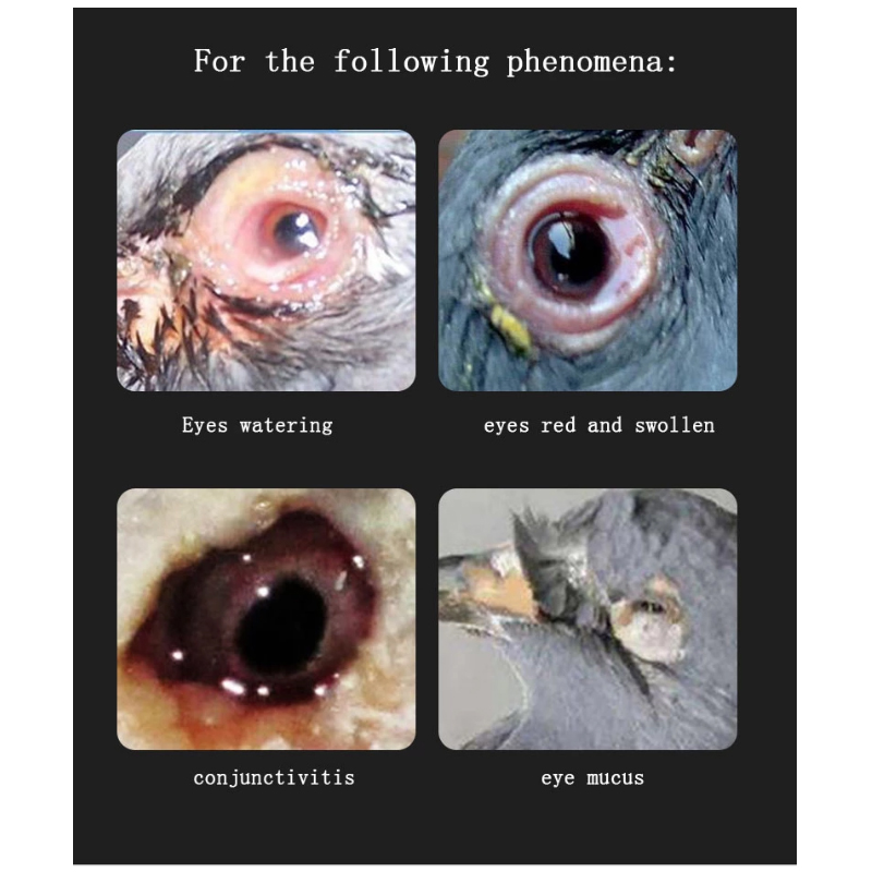 Prevention: The pigeons can prevent bacterial infections and eye injuries after returning home. 1 drop for each of the left and right eyes. At the same time, one drop on the left and right nose.